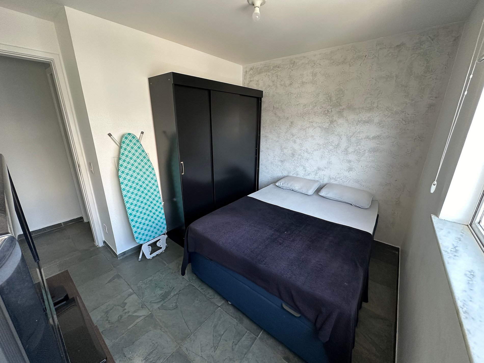 Este apartamento de dois quartos oferece um ambiente confortável e funcional, com duas camas de casal e ar-condicionado em ambos os quartos. A cozinha é equipada com geladeira, micro-ondas e fogão, ideal para preparar refeições no dia a dia. A sala de estar conta com sofá retrátil e mesa com quatro cadeiras, criando um espaço agradável para descanso e convivência. O apartamento também possui duas TVs com acesso a serviços de streaming, varanda e internet fibra de 700 MB, garantindo uma conexão rápida e estável durante toda a estadia.